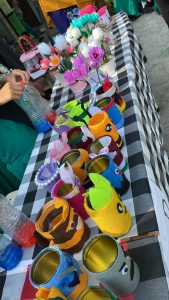 Peserta pameran adalah siswa-siswi kelas 7 dan 8. Setiap kelas difasilitasi stand di halaman sekolah. Karya terbaik yang berasal dari bahan bekas akan dipamerkan. Ada tempat pensil dari kaleng, tas dari tutup botol, bunga dari sendok plastik, dll.